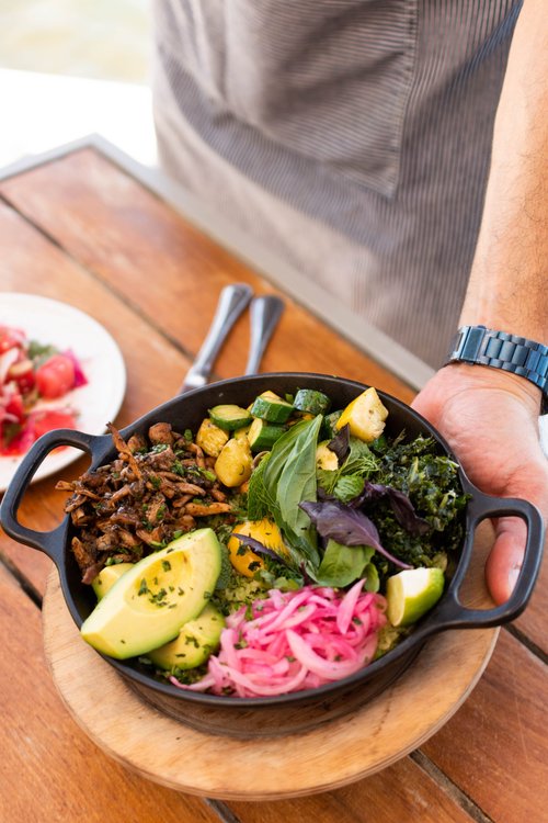 A breakfast bowl served next to the ocean. Amara at Paraiso.