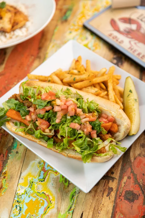 A fried crab hoagie roll on a plate at Bazaar by Jose Andres.