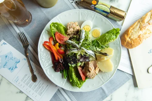 Tuna Niçoise salad on a plate at Traymore.