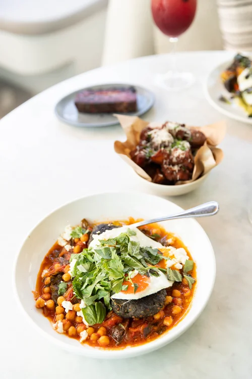 Miso poached eggs on a plate at Traymore.